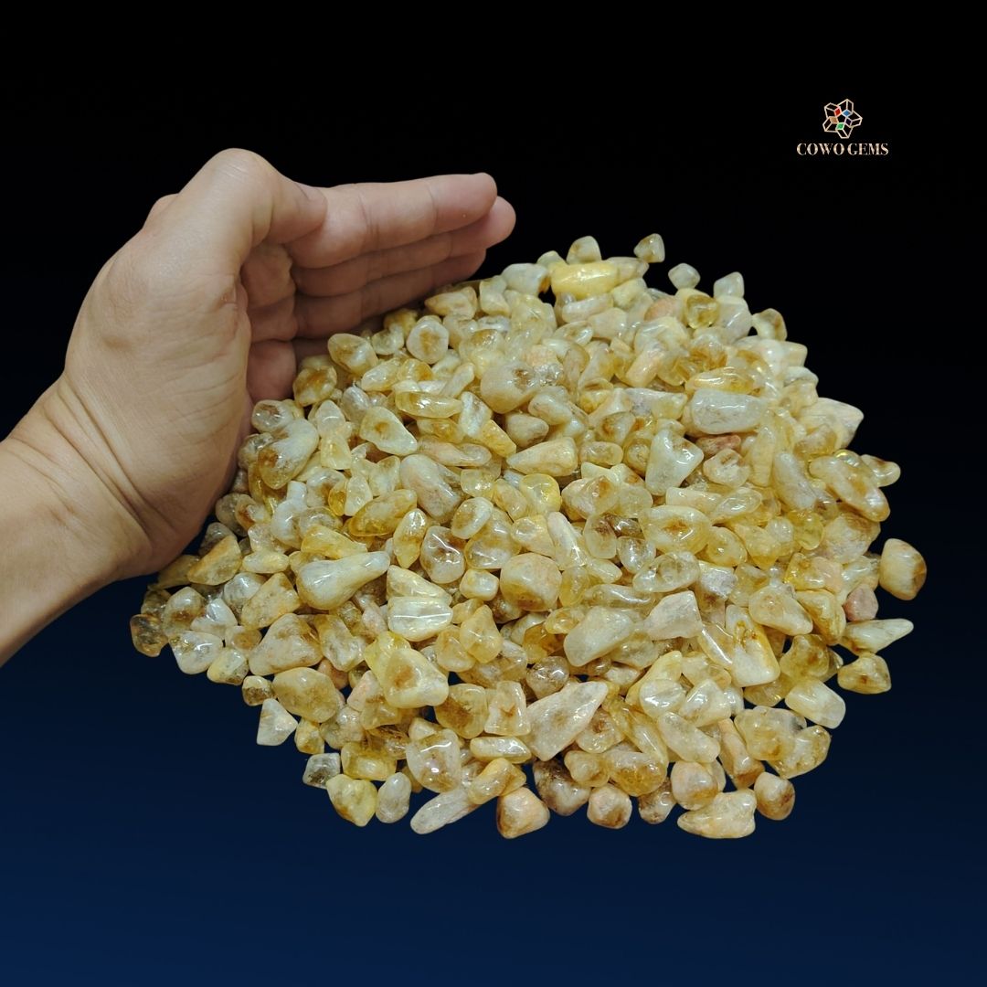 Đá vụn thạch anh vàng là một trong những dòng sản phẩm phong thủy cao cấp được nhiều khách hàng yêu thích tại Cowo Gems. Với sắc vàng rực rỡ tượng trưng cho phú quý – may mắn – năng lượng mặt trời, thạch anh vàng vụn không chỉ đẹp mắt mà còn mang lại nhiều giá trị về tinh thần, phong thủy và sức khỏe.