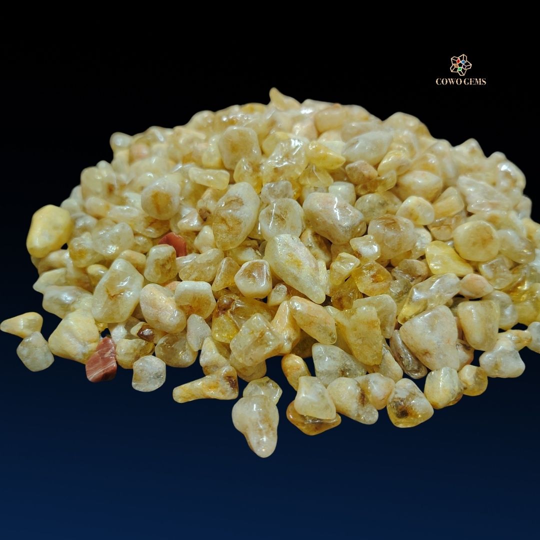 Tại Cowo Gems, toàn bộ đá thạch anh vàng vụn đều được chọn lọc từ đá thô tự nhiên 100%, không xử lý hóa chất, giữ nguyên năng lượng và màu sắc nguyên bản.